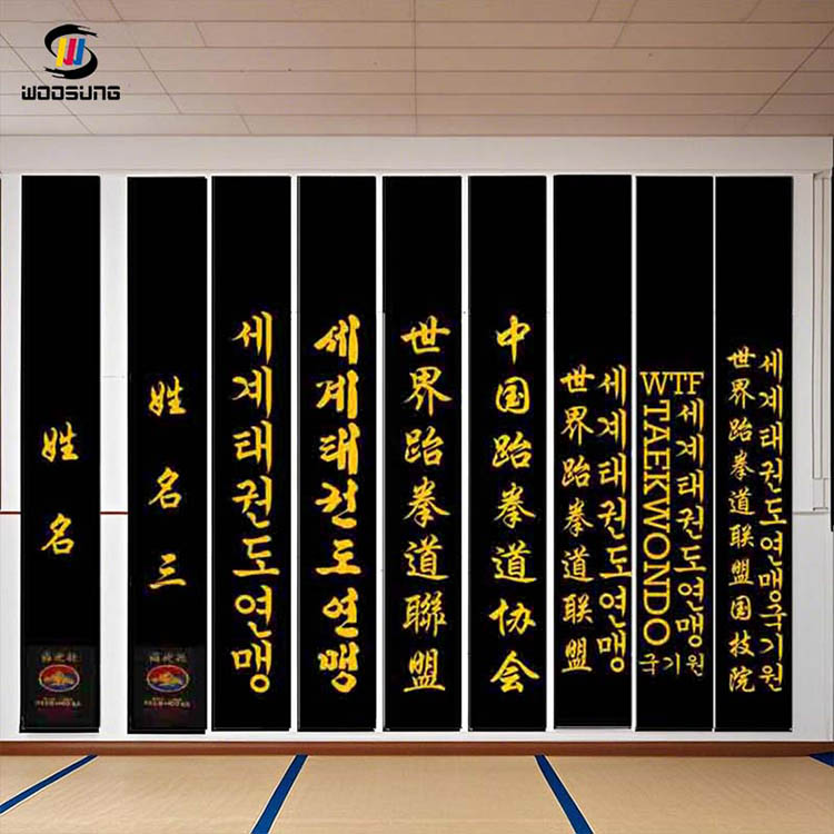 Utilizziamo materiali tessili resistenti all'usura e ad alta resistenza, formati attraverso un processo di tessitura stabile, garantendo che la cintura con logo karate WOOSUNG sia resistente al pilling e alla deformazione durante l'allenamento a lungo termine.