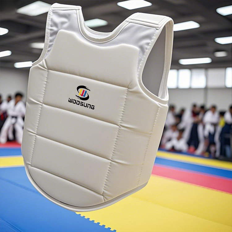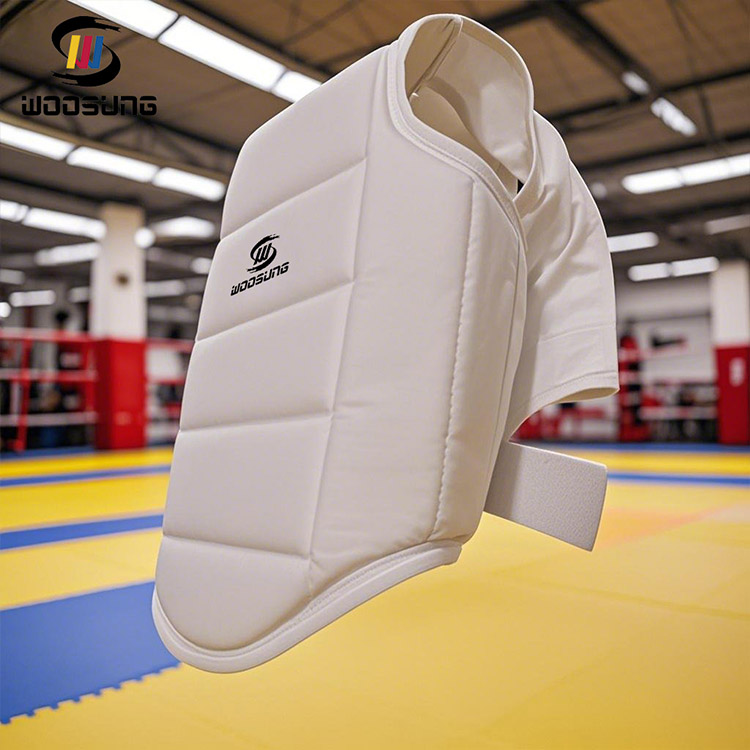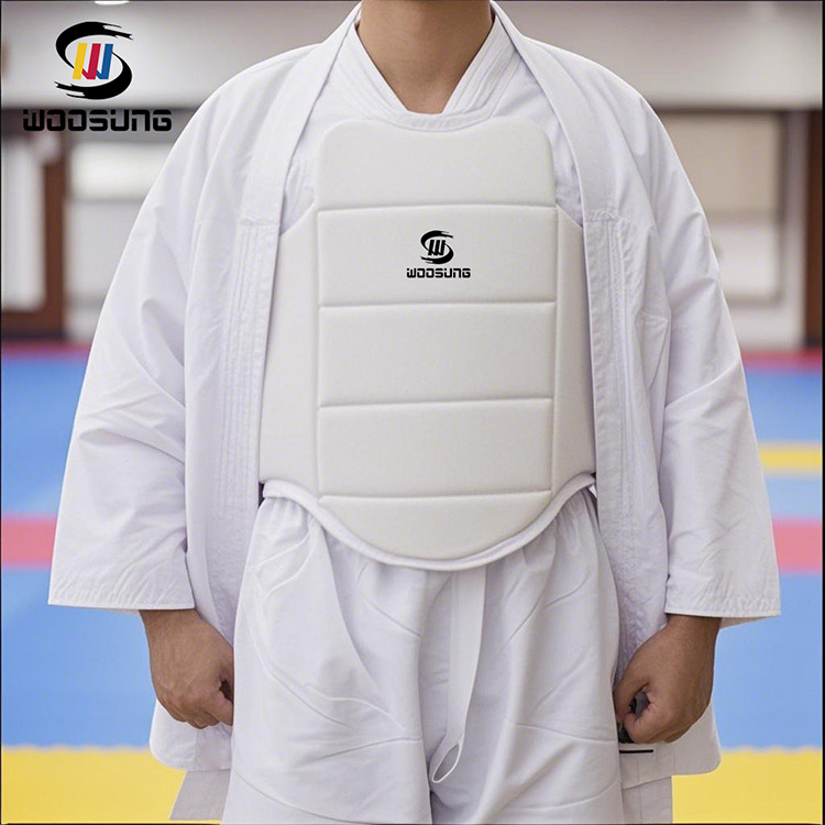 WOOSUNG ha considerato pienamente le caratteristiche della forma del corpo femminile nella progettazione della protezione toracica da karate in PU: