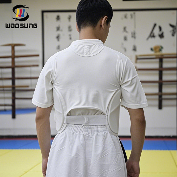 Il disegno delWOOSUNGLa protezione toracica per karate in PU si ispira alla struttura semplice e alle proporzioni dell'abbigliamento tradizionale delle arti marziali. In termini di aspetto, lo stile generale è sobrio e pulito, non persegue forme esagerate, ma enfatizza la professionalità e la continuazione dello spirito delle arti marziali.