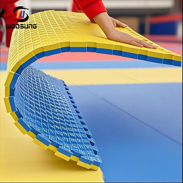 In qualità di esperto nella produzione di tappetini tatami Taekwondo con 25 anni di esperienza nel campo delle attrezzature per arti marziali, WOOSUNG fornisce ai dojo globali sistemi di pavimentazione che soddisfano gli standard di concorrenza internazionali. La nostra struttura composita EVA ad altissima densità sviluppata risolve i problemi dei tappetini tradizionali che sono inclini a spostarsi e a subire un rapido degrado dell'elasticità, ottenendo allo stesso tempo un miglioramento significativo nella sicurezza ambientale.